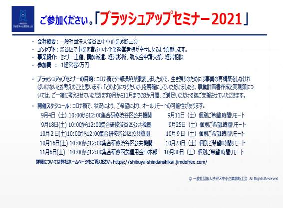1.ブラッシュアップセミナー2021を開催しますのでご参加ください。