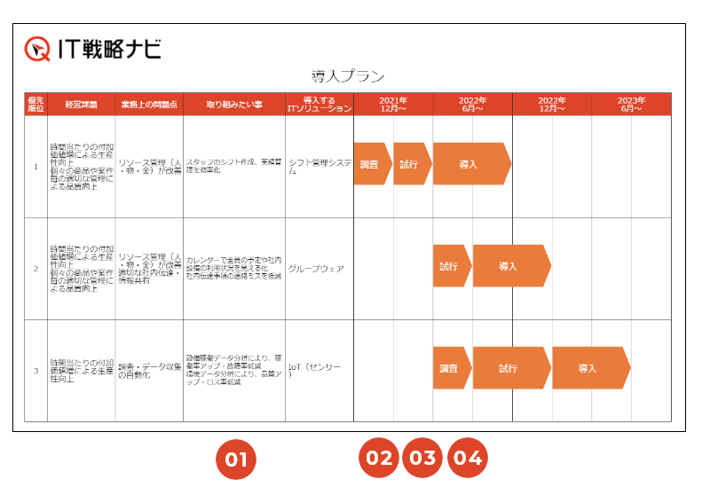 導入プランでは「取り組みごとの大まかなスケジュール」が作成できます。