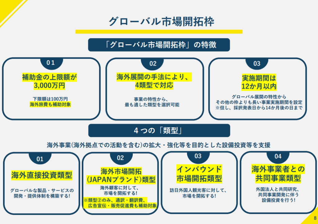 下記の図は、グローバル市場開拓枠について公式ホームページでわかりやすくまとめたものです。