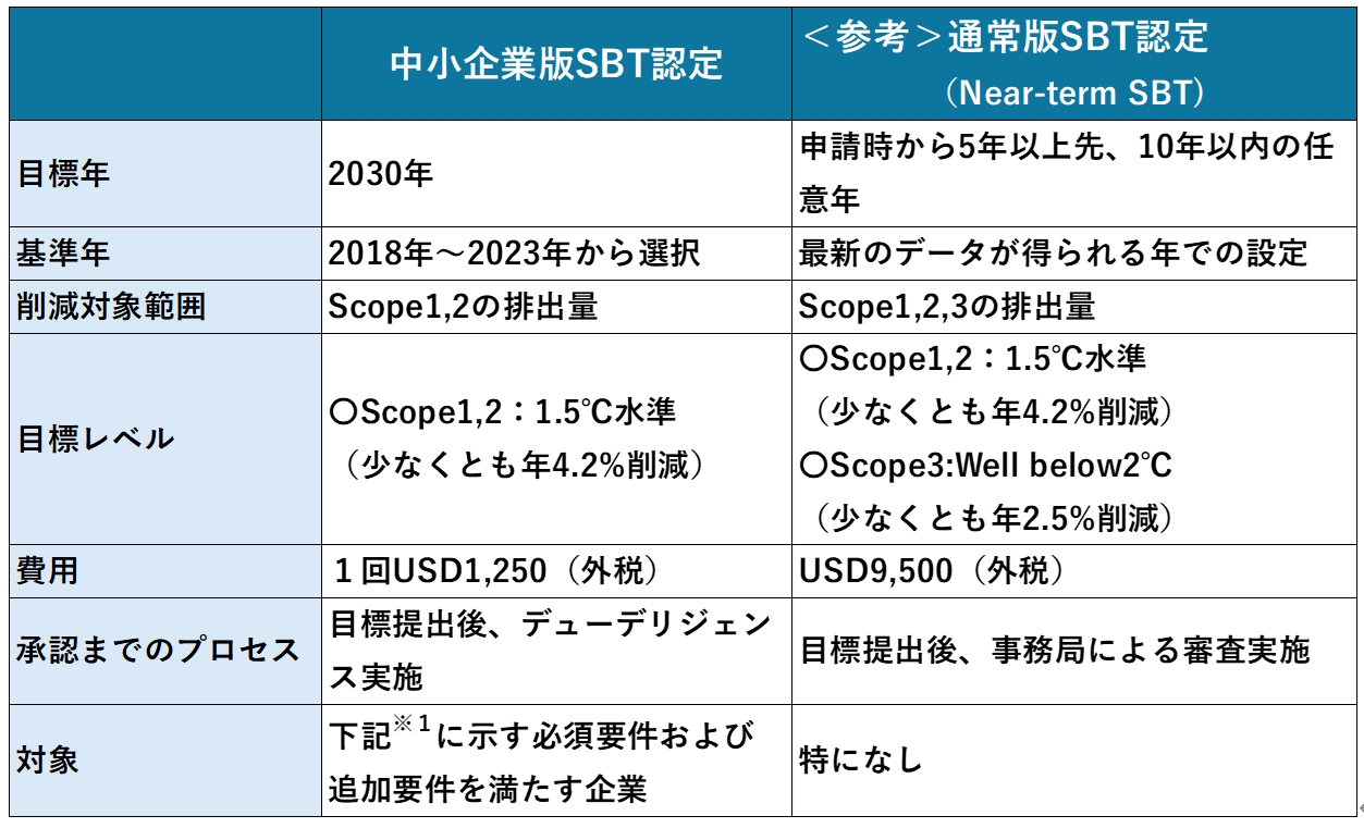 中小企業向けSBT(2023年12月末まで)と通常版SBTの違い