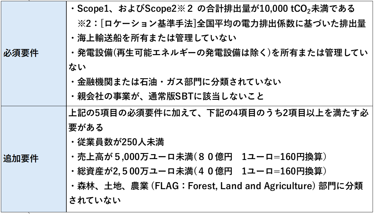 中小企業版SBTの対象となる中小企業が満たすべき要件※1
